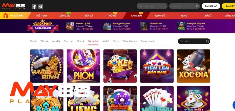 Kho game bài quy mô lớn cho phép May88 đem đến trải nghiệm tuyệt vời với những trò chơi phổ biến như sau: